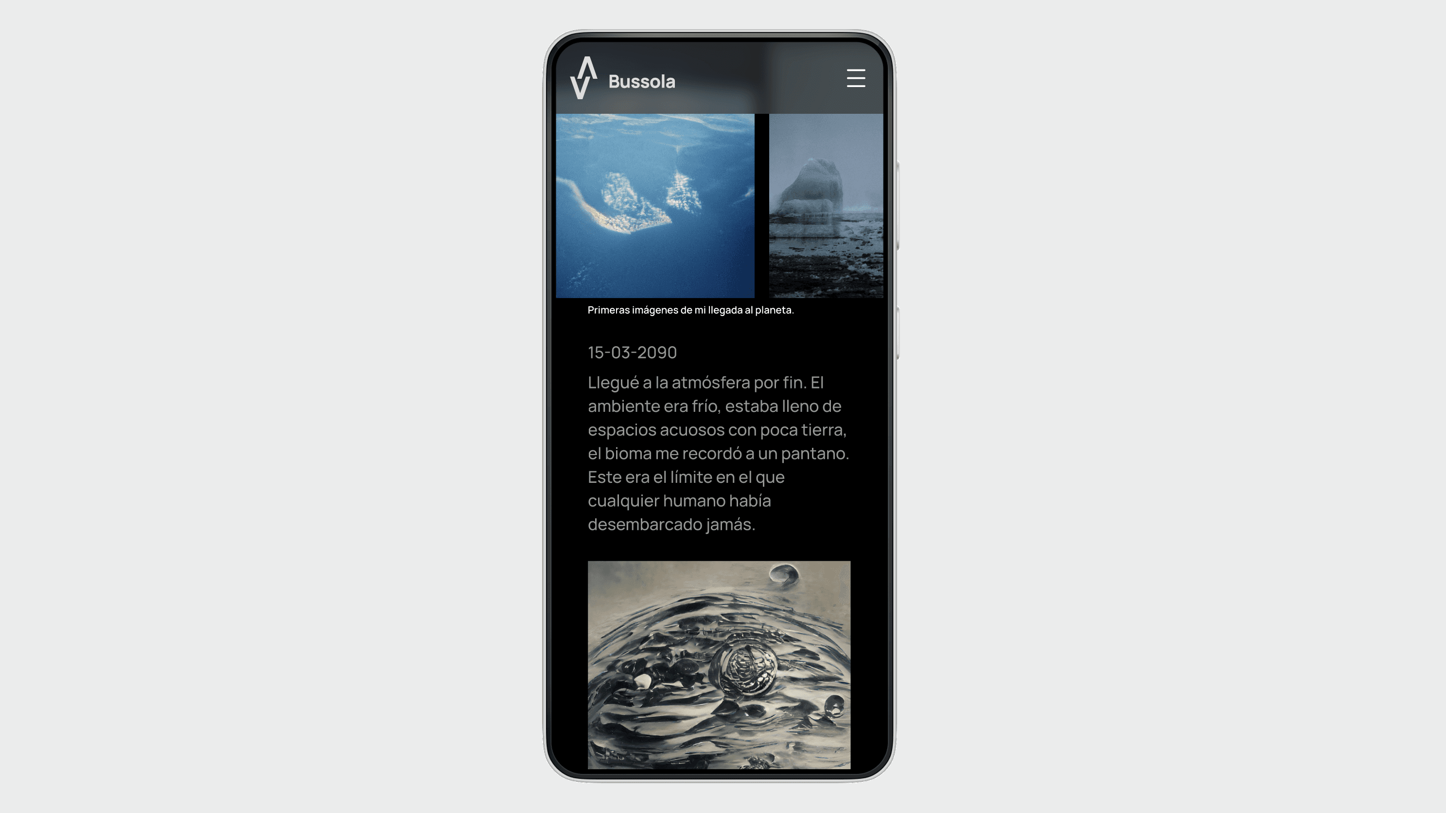 Bussola es un proyecto personal que explora la creación de narrativas visuales y escrita mediante diversas inteligencias artificiales. A partir de fotografías reales se reinterpretan los paisajes, dibujos esquemáticos, la fauna o la flora de diversos planetas remotos, todo ello mientras sumerge al lector a una narrativa trepidante.