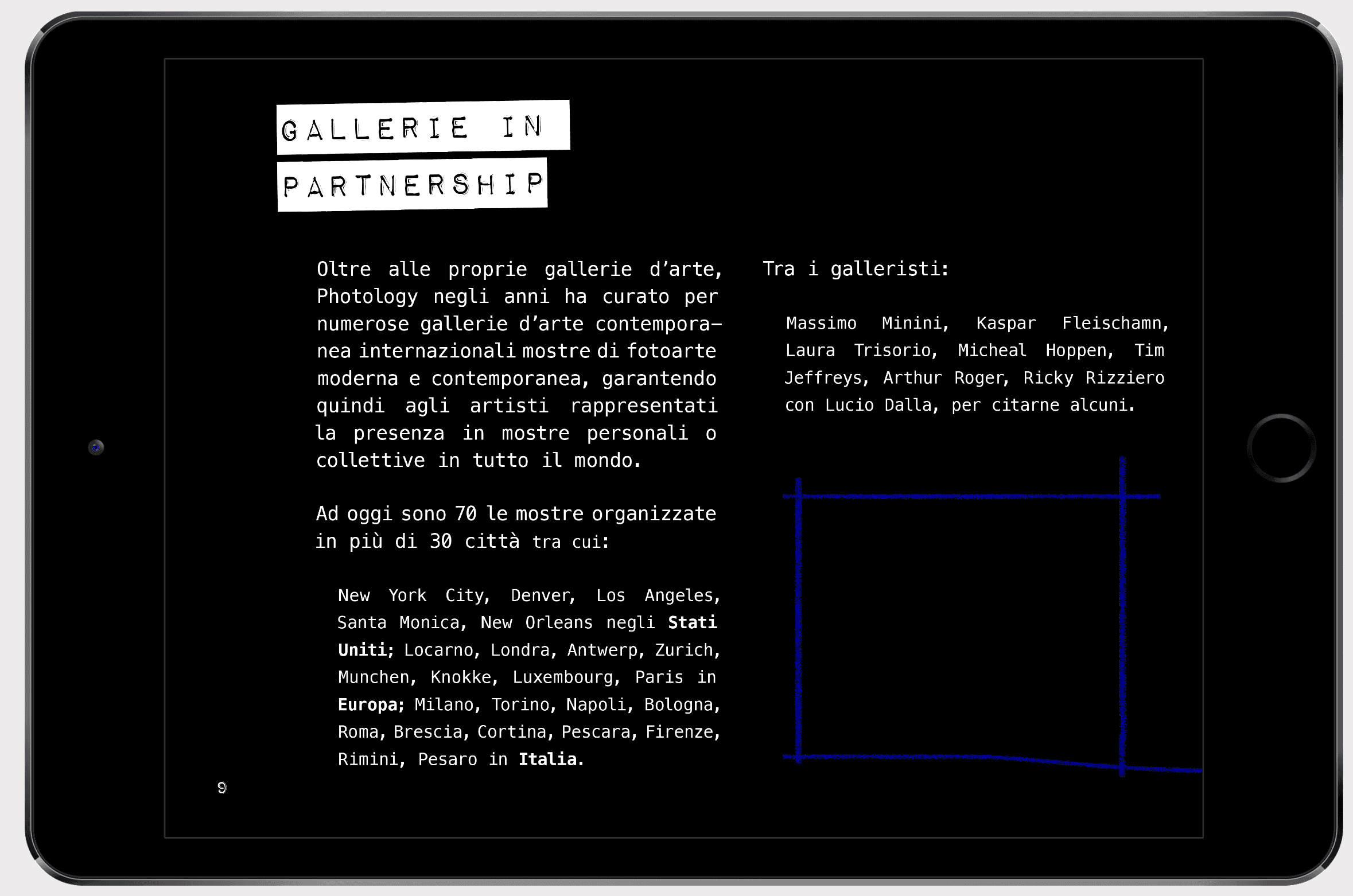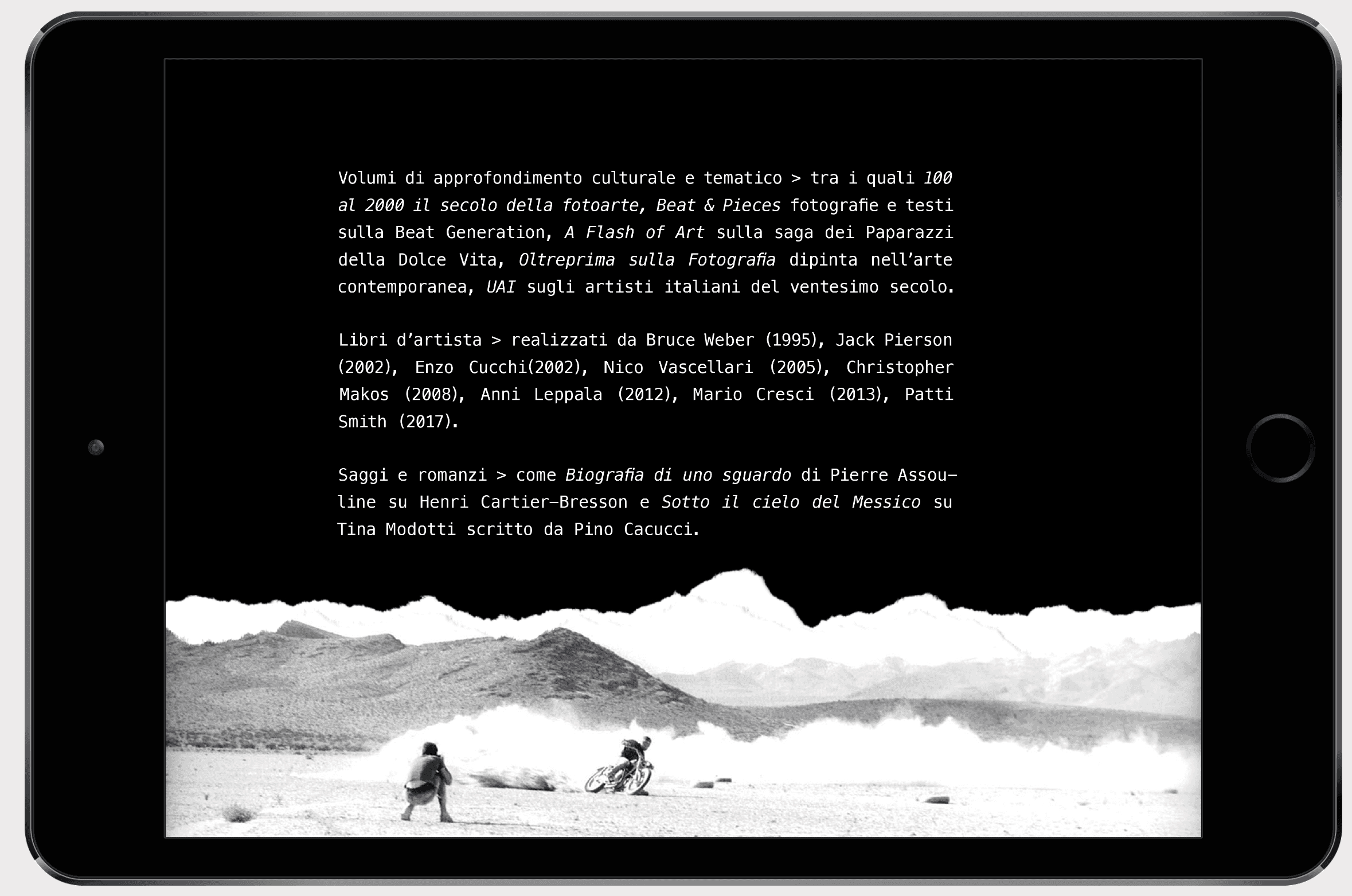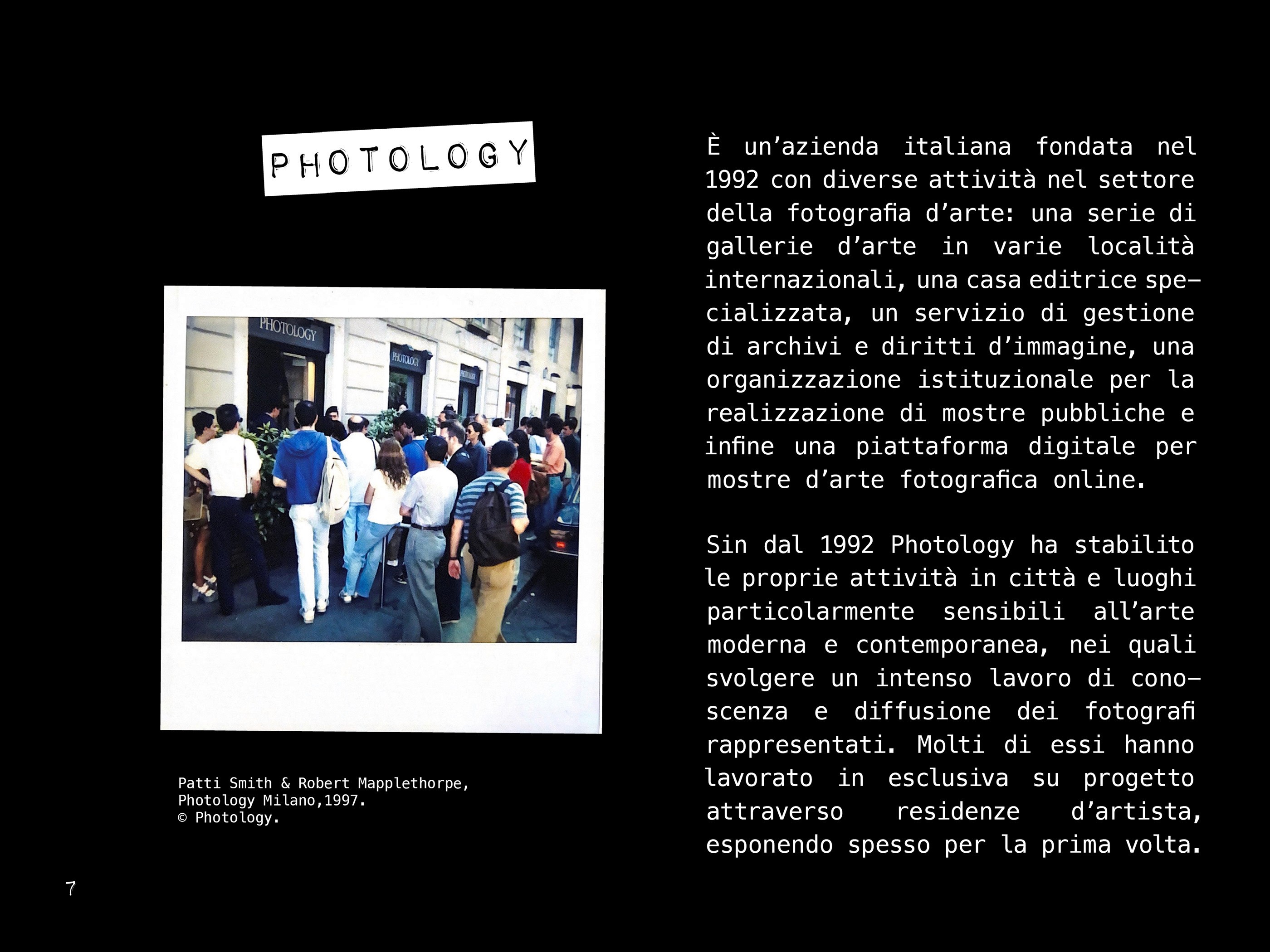 Dossier digital para el documental «Good save the click» que recoge 30 años de trabajo de la galería Photology (Bologna, Italia) a través de diversas imágenes de artistas reconocidos internacionalmente, testimonios de comisarios, conservadores de arte, periodistas y otras eminencias. Siguiendo los lenguajes gráficos de la fotografía y el archivo se ha creado este dossier a modo de presentación para clientes. Este proyecto ha sido realizado integramente en Italiano.